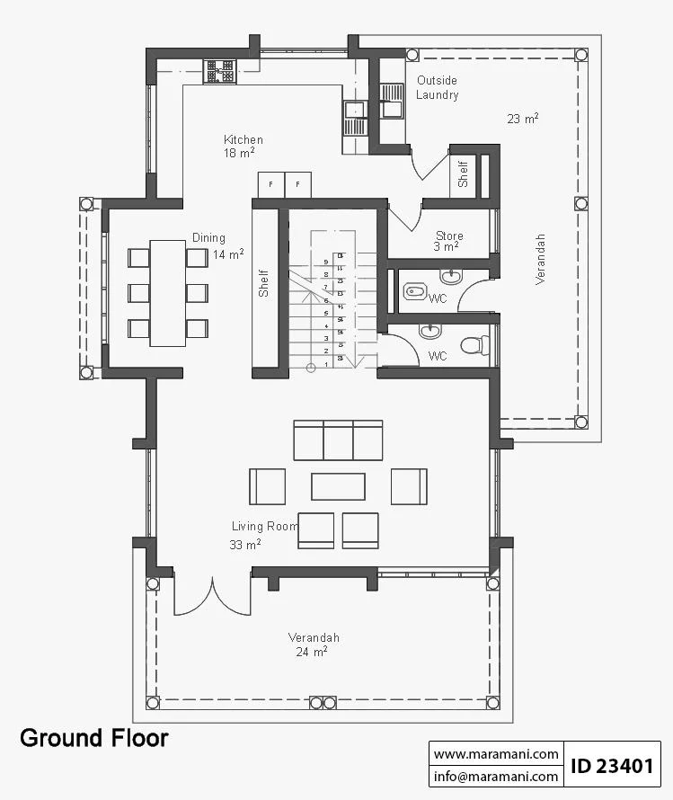 3 bedroom house plan - ID 23401